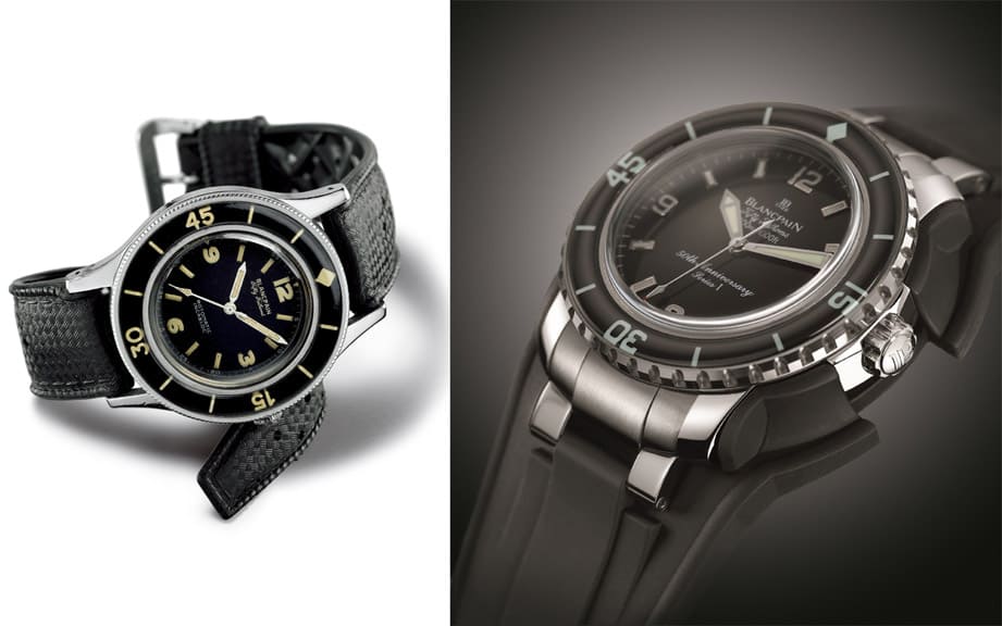 ▲图左为1953年第一只五十噚手表、图右为2003年问世的五十噚50周年纪念版。