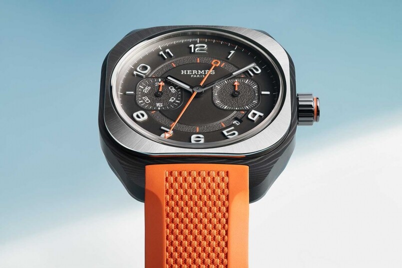 全新Royal Oak Offshore皇家橡树离岸型自动上链计时码表采用2020年推出的43mm表壳,完全以黑色陶瓷打造,搭配以钛金属制作的连接扣、计时按钮及底盖。此外,还有八颗不锈钢螺丝将八角表圈锁入表壳。得益于精心选择的轻盈材质,腕表总重仅有103克,尽管尺寸超大,佩戴起来却仍轻盈舒适。